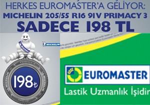 Yaz aylarına girerken lastiklerini yenilemek isteyen sürücüleri servis noktalarına davet eden Euromaster, kampanya kapsamında Haziran ayı boyunca Michelin 205/55 R 16 91V Primacy 3 model lastikleri KDV dahil 198 TL’den satışa sunuyor.
