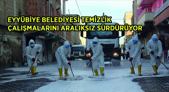 Şanlıurfa Eyyübiye Belediyesi, dünyayı etkisi altına alan korona virüs (Covid- 19) salgınına karşı korunma tedbirleri kapsamında ilçe genelindeki temizlik çalışmalarına devam ediyor. Her alanı temizleyen ve dezenfekte eden ekipler, vatandaşların takdirini kazanıyor. Rutin belediyecilik çalışmalarının yanı sıra korona virüs salgınıyla mücadele kapsamında adeta seferberlik başlatan Eyyübiye Belediyesi salgının görülmeye başladığı ilk günden itibaren alınan tedbirler kapsamında çalışmalarına aralıksız devam ediyor. Vatandaş sağlığı ve hijyeni ön planda tutan ekipler, ilçeyi adeta köşe bucak yıkıyor. Girilmedik cadde ve sokak bırakmayan ekipler, işyerleri başta olmak üzere, vatandaşların yoğunluk oluşturduğu her alanı temizliyor. Çalışmalara sabahın erken saatlerinde başlayan ve gecenin ilerleyen saatlerine kadar sürdüren ekipler, vatandaşların takdirini kazanıyor.