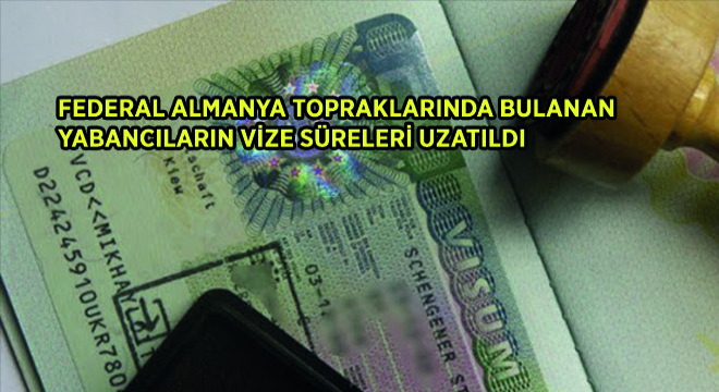 "Federal Almanya İçişleri Bakanı Horst Seehofer tarafından imzalanan genelgede; 17 Mart 2020 veya 17 Mart 2020 sonrası ve bu genelgenin yürürlüğe girdiği tarihten önce Federal Almanya topraklarına seyahat etmiş ve genelgenin yürürlüğe girdiği tarih itibaren Federal Almanya topraklarında bulunan yabancıların vize sürelerinin bitimiyle itibaren 30 Haziran 2020 tarihine kadar vize (oturum) süreleri uzatılmıştır.