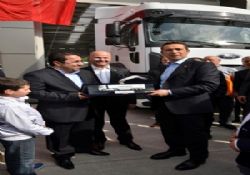 Erdeğer, Gemlik’te yurtiçi taşımacılık sektöründe faaliyet gösteren Akran Nakliye’ye 3 adet Ford Cargo 1846T otomatik vites çekiciyi, Koç Holding Yönetim Kurulu Üyesi ve Ford Otosan Yönetim Kurulu Başkanı Ali Koç’la birlikte teslim etti.
