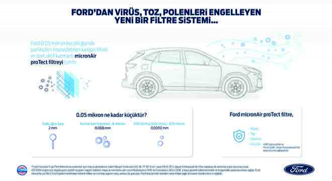 Ford MicronAir Protect kabin hava filtresi, insan saçının binde biri kalınlığından daha küçük olan 0,05 mikron kalındığındaki partikülleri filtre edebiliyor. Filtre, aracın havalandırma sistemine takıldığında içeri giren virüs, toz, polen gibi zararlı parçacıkların yoğunluğunu seyreltiyor. Virüs içeren su damlacıklarını olabildiğince hızlı yok ederek kontaminasyon (bulaşma) ve enfeksiyon olasılığını en aza indiren sistem, araç içindeki yolcu ve sürücülerin sağlığını koruyor.
