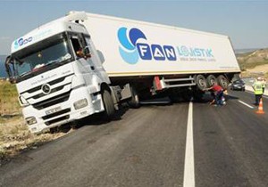 İstanbul'dan Balıkesir'e giden Hasan Özer yönetimindeki tır, Çanakkale - İzmir kara yolunun 12'nci kilometresinde İntepe rampaları mevkisinde fren aksamında meydana gelen arızadan dolayı kontrolden çıktı.