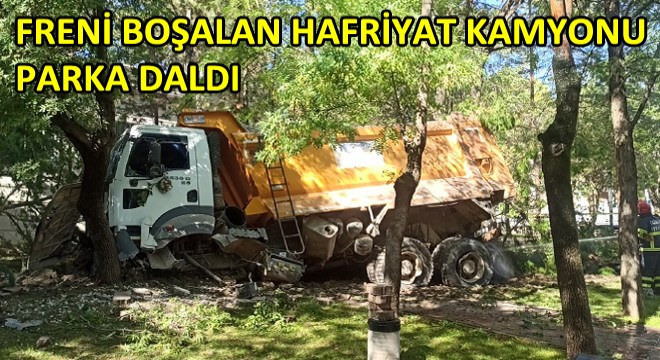 Yaklaşık 800 metre giden kamyon önce eski Devlet Hastanesi Kavşağı'nda bulunan kaldırıma ardından parkın istinat duvarına çarptı. Çarpmanın etkisiyle istinat duvarını aşan kamyon Yunus Emre Parkı'na daldı. Parkta bulunan 3 çam ağacını yıkan kamyon güçlükle durabildi.