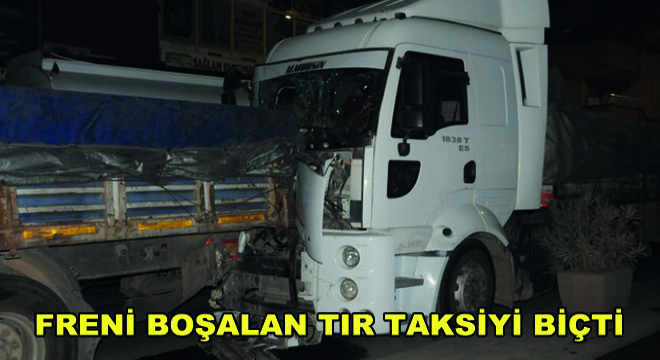 Şırnak'ın Cizre ilçesinde, freni boşalan TIR önce otomobile, daha sonra da TIR'a çarparak durabildi. Nur Mahallesi İdil Caddesi'nde R.B. yönetimindeki TIR, freninin boşalması sonucu kontrolden çıktı. TIR, önce İ.M'nin kullandığı taksiye daha sonra R.B. idaresindeki TIR'a çarparak durdu.
