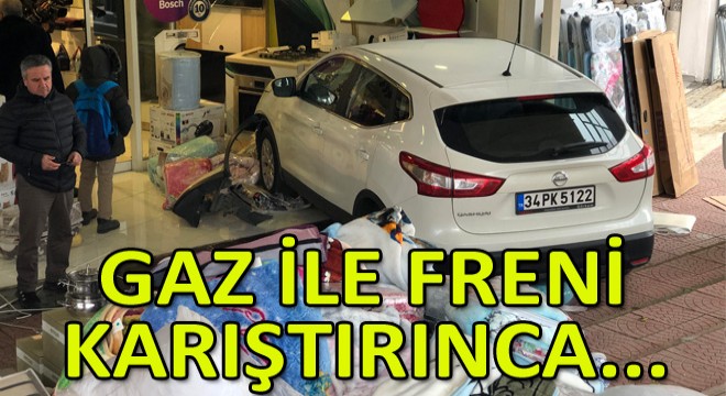 İlginç kaza, Büyükçekmece Çarmıklı Caddesi'nde yaşandı. Ayfer Ü. yönetimindeki 34 PK 5122 plakalı otomobil, bir anda kontrolden çıkarak cadde üzerindeki beyaz eşya dükkanına daldı. Kazada ölen ya da yaralanan olmazken, büyük panik yaşandı. Aracından çıkan sürücünün, fren ile gaz pedalını karıştırarak panik yaptığı iddia edildi.