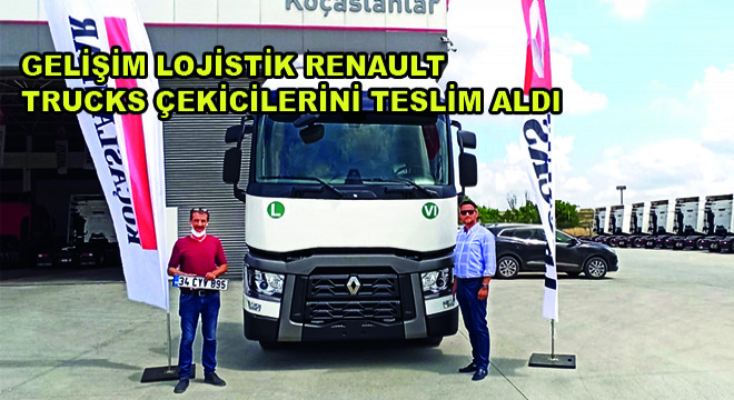 Gelişim Lojistik’in yeni araçları Renault Trucks yetkili bayisi Koçaslanlar Otomotiv’in Hadımköy Şubesi Satış Müdürü Tayfun Fıçıcı tarafından Gelişim Lojistik Yönetim Kurulu Başkanı Abdurrahman İneci’ye teslim edildi.