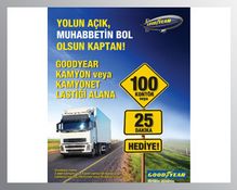 Goodyear markalı kamyon ve kamyonet lastikleri alan tüketiciler, 2010 yılında da kazanmaya devam ediyorlar. Tüm Goodyear bayilerinde 15 Şubat tarihinde başlayan kampanyaya katılan tüketiciler; hem Goodyear kamyon ve kamyonet lastiklerine sahip olacak, hem de tüm cep telefonu operatörlerinde kontör ve dakika kazanacaklar.