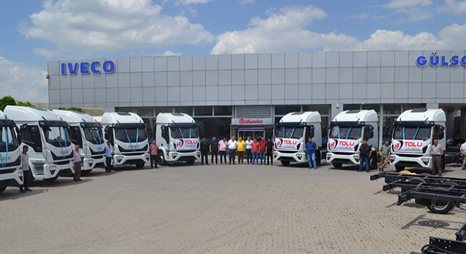 IVECO’nun Kayseri yetkili satıcısı Gülsoylar Otomotiv 14 adet Eurocargo aracı Tolu Lojistik firmasına törenle teslim etti. Gülsoylar’ın Kayseri’deki tesisinde gerçekleşen törende, Tolu Lojistik satın almış olduğu 14 adet Eurocargo araç ile filosunda bulunan IVECO marka araç sayısını 50 adede çıkarmış oldu.IVECO Yetkili Satıcısı Gülsoylar’ın tesisinde düzenlenen teslimat törenine Tolu Lojistik Yönetim Kurulu Başkanı Harun Tolu, Gülsoylar Yönetim Kurulu Üyesi Önder Candan Gülsoy, Gülsoylar Satış Müdürü; Seyfettin Alas, Daily-Euro Cargo Satış Danışmanı; Ali Tekin, Gülsoylar Servis Müdürü; İdris Değirmenci, Tolu Lojistik Genel Müdürü Kenan Kızılyaka ve Tolu Lojistik’ten Mustafa Tolu ile Hakan Tolu katıldı.