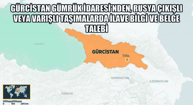 Tiflis Ticaret Müşavirliğimizden gelen resmi bilgilendirmeye göre; Gürcistan'ın Rusya'ya karşı AB, ABD ve Birleşik Krallık gibi ülkeler tarafından uygulanan uluslararası yaptırımları uygulamakta olduğu, taşımacılığın varış veya çıkış ülkesinin Rusya ve yaptırımlara taraf ülkeler arasında olması durumunda eşyanın Gürcistan Gümrüklerinde sıkı kontrollere tabi olduğunun Gürcü Resmi Makamlarınca bildirildiği ifade edilerek Rusya çıkışlı veya varışlı eşyaya ilişkin transit taşımalarda; Gürcistan Gümrük İdaresince sözleşme, CMR gibi belgelerin uyumluluğuna dikkat edildiği, menşe belgesi ve gerek görülmesi halinde ilave bilgi ve belgeler (alıcı ve satıcı arasındaki güncel sözleşme vb. taşınan eşyaya ilişkin ihracatçı ve İthalatçı arasındaki tüm belgeleri) talep edilebildiği belirtilmektedir.