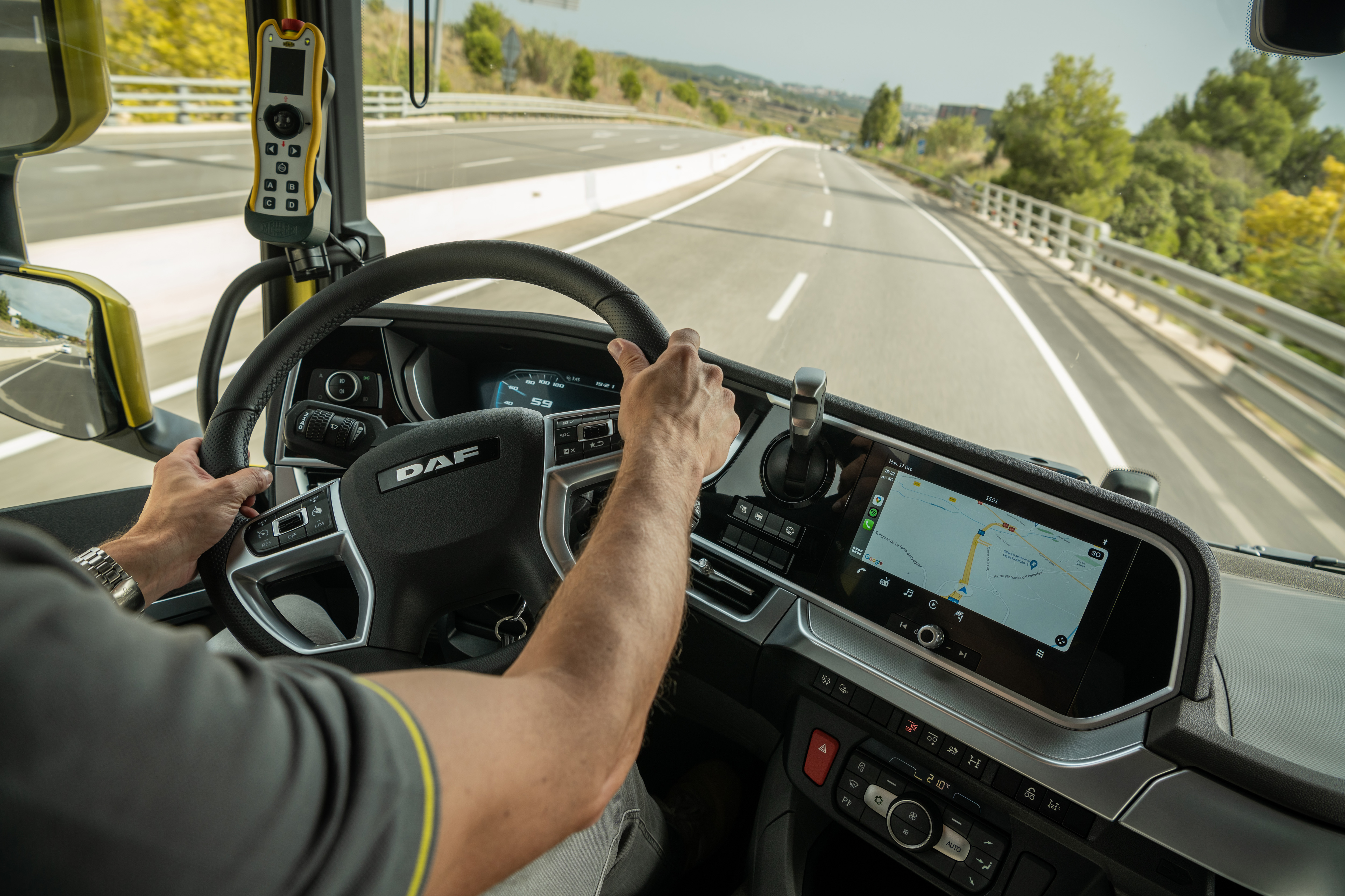*Arka Duvar Kontrol Paneli, DAF Digital Vision System ve DAF Corner View kameralarıyla etkileşime geçen bir gözetim modu içeriyor. Bir panik butonu korna ve dörtlü flaşörleri hemen çalıştırıyor.