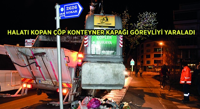 Olay, Büyük Bölcek Mahallesi Cumhuriyet Bulvarı üzerinde meydana geldi. Edinilen bilgiye göre, ekip arkadaşlarıyla birlikte 06 FN 0246 plakalı çöp kamyonuyla çöp toplamaya çıkan Suat K. (36), Cumhuriyet bulvarındaki çöp konteynerını boşaltmak istedi. Halatı bağlayarak çöp konteynerını kaldıran Suat K. konteynır kapağının bağlı olduğu halatın kopması ve kapağın üzerine açılması sonucu yaralandı. Durumu fark eden ekip arkadaşları durumu hemen 112 Acil Çağrı Merkezine bildirdi. İhbar üzerine olay yerine ambulans ve polis sevk edilirken, kısa sürede olay yerine gelen 112 Acil Yardım ekipleri yaralı görevliye ilk müdahaleyi olay yerinde yaptı. Polis ekipleri olayla ilgili inceleme başlatırken, Suat K. ambulansla Aksaray Üniversitesi Eğitim ve Araştırma Hastanesi Acil Servisine kaldırıldı. Burada tedavi altına alınan yaralının durumunun iyi olduğu öğrenilirken, kazayla ilgili soruşturma başlatıldı.
