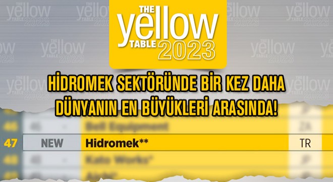 Sektörel bazda dergileri, web siteleri ve çeşitli faaliyetleri ile birçok alanda dünyaya bilgi tedariki sağlayan basın kuruluşu KHL Group’un bünyesinde yayınlanan International Construction Dergisi, her yıl yenilenen ve iş makineleri üreten en büyük firmaların yıllık satış cirosuna göre sıralandığı uluslararası “Yellow Table 2023” listesini açıkladı. 2022 yılı verilerine göre hazırlanan listede bu yıl 47’nci sırada yer alan HİDROMEK listeye 9’uncu kez girme başarısını gösterdi.