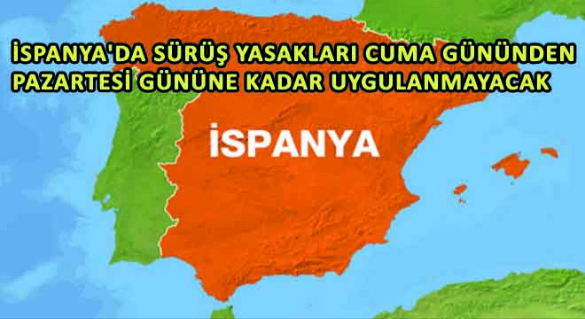 İspanya'da yürürlükte olan sürüş yasakları Bask ve Katalonya bölgeleri haricinde 26.03.2021 Cuma gününden 05.02.2021 Pazartesi gününe kadar uygulanmayacaktır. Söz konusu iki gün de yasakların uygulanmayacağı süreye dahildir."