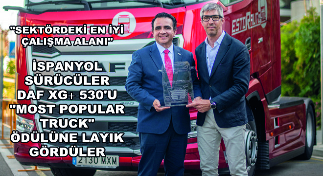 "Most Popular Truck" ödül töreni Hyatt Regency Barcelona Tower Hotel'de gerçekleştirildi. İspanya'nın önde gelen 150'yi aşkın taşımacılık şirketinin sahibinin huzurunda, Encamion çevrimiçi dergisinin Direktörü Eugeni Gallego, DAF Trucks İspanya ve Portekiz Genel Müdürü Luis Reyes'e ödülü takdim etti.