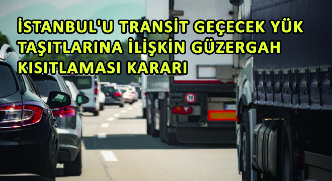 "Bilindiği üzere, Derneğimiz tarafından TOBB'dan edinilen bilgiye istinaden; 31 Mayıs 2021 itibariyle Avrupa’dan Asya’ya Asya’dan Avrupa’ya yük taşımacılığı yaparak, İstanbul bölgesini transit kullanan araçların D100, TEM ve bağlantı yolları yerine, Kuzey Çevre Otoyolu'nu kullanarak geçiş yapmaları kararı alındığı duyurulmuş idi. (Bkz: İstanbul’u Transit Geçecek Yük Taşıtlarına İlişkin Güzergah Kısıtlaması Hakkında Önemli Duyuru)