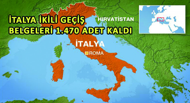 22.04.2021 tarihinde kullanıma açılan İtalya ikili geçiş belgeleri 08.06.2021 tarihi itibariyle 1.470 adet kalmıştır. Söz konusu belgelerin 21.06.2021 tarihi itibariyle tükenmesi öngörülmektedir.