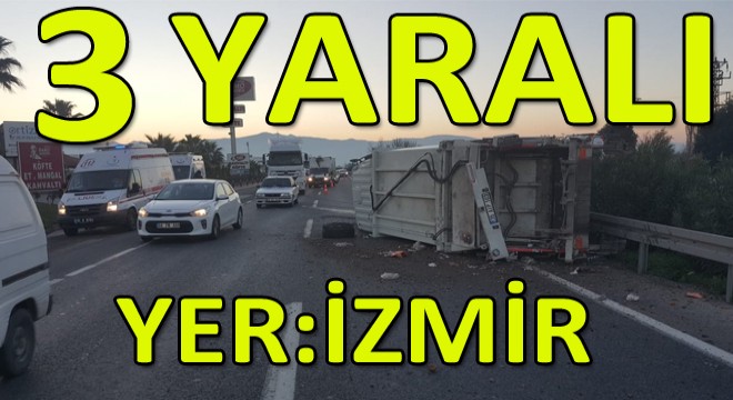 Kazada sürücü İ.İ ile çalışanlardan S.B. ve R.Ç. yaralandı. Çevredeki vatandaşların bildirilmesi üzerine olay yerine intikal eden 112 ekipleri, yaralıları Menemen Devlet Hastanesine kaldırdı. Yaralıların hayati tehlikesi olmadığı ve olayla ilgili jandarma tarafından soruşturma başlatıldığı öğrenildi.