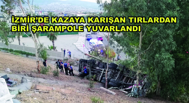 İzmir’de Kazaya Karışan Tırlardan Biri Şarampole Yuvarlandı