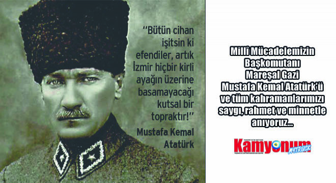 Millî Mücadelemizin Başkomutanı Mareşal Gazi Mustafa Kemal Atatürk'ü ve tüm kahramanlarımızı saygı, rahmet ve minnetle anıyoruz...