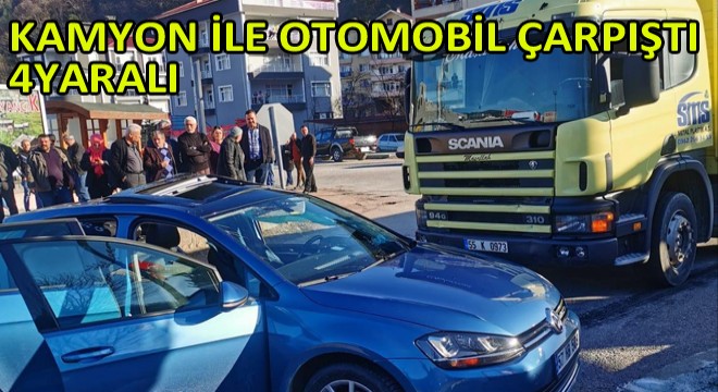Sinop'un Ayancık ilçesinde kamyon ile otomobilin çarpışması sonucu meydana gelen trafik kazasında 4 kişi yaralandı.
