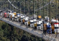 İstanbul'da kamyon şöförlerinin Fatih Sultan Mehmet (FSM) Köprüsü'nde gerçekleştirdiği protesto eylemi, trafiğin yavaşlamasına neden oldu.