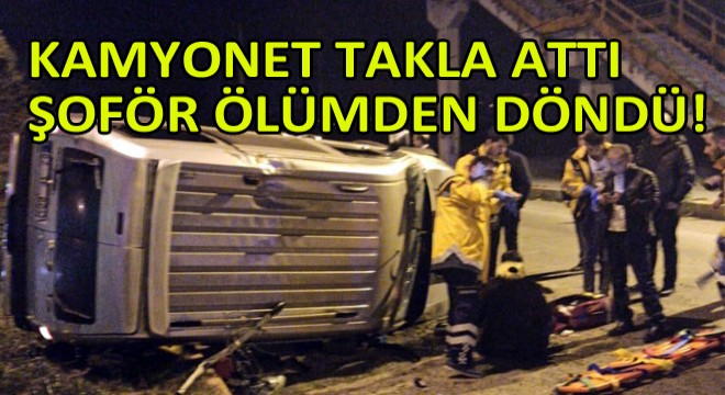 Edinilen bilgiye göre Zonguldak istikametinden Çaycuma istikametine seyir halinde olan Soner Ö. (38) hakimiyetindeki 67 TF 604 plakalı kamyonet Çaycuma ışıklı kavşağa doğru yaklaşırken üst geçidin altındaki bariyerlere çarparak takla attı. Sürücüsünün direksiyon hakimiyetini kaybedip kaza yapan aracı gören diğer sürücüler 112 acil servisi ve trafik polisini arayarak yardım istedi. Olay yerine gelen ambulans ile araçta bulunan şoför Soner Ö. ve yanında bulunan İrfan G.'ye (39) ilk müdahaleleri yapılarak Çaycuma Devlet Hastanesine kaldırıldı. Tedavi altına alınan yaralıların sağlık durumlarının iyi olduğunu belirtildi.