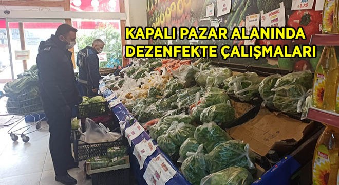Salgın ile mücadelenin ilk gününden bu yana binlerce noktada dezenfekte çalışması gerçekleştiren ekipler, vatandaşların özellikle yoğun olduğu alanlardaki çalışmalarını artırarak devam ettiriyor. Kapalı Pazar’da sosyal mesafe ve temizlik çalışmaları başta olmak üzere bütün tedbirleri alan ekipler, çalışmaları kapsamında Pazar alanının bütün noktalarında Sağlık Bakanlığı’nın onay verdiği dezenfektanlı ilaçlar ile dezenfekte çalışmasını gerçekleştirdi.