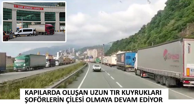 Geçtiğimiz günlerde Hamzabeyli Sınır Kapısı'nda oluşan 39 kilometrelik tır kuyruğunu ve yine Aktaş Sınır Kapısı'nda yaşanan 33 kilometrelik tır yoğunluğuna haberlerimizde yer vermiştik. Bu defa aynı manzara ile Sarp Sınır Kapısı'nda da karşılaşıldı.