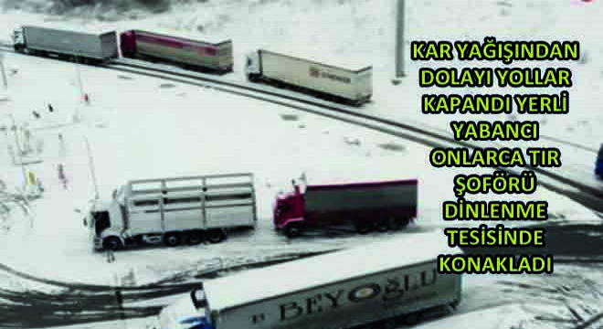 Ankara- Bolu otobanı aşırı kar yağışı nedeni ile gece saatlerinde trafiğe kapatıldı. Trafiğin daha da yoğunlaşmaması açısından İstanbul'dan Ankara otobanına bağlanmak isteyen tır şoförlerinin geçişlerine izin verilmedi. İstanbul Valiliği tarafından uygun konaklama noktaları tır şoförlerine duyuruldu. Yerli yabancı onlarca tır şoförü geceyi dinlenme tesislerinde geçirdi.