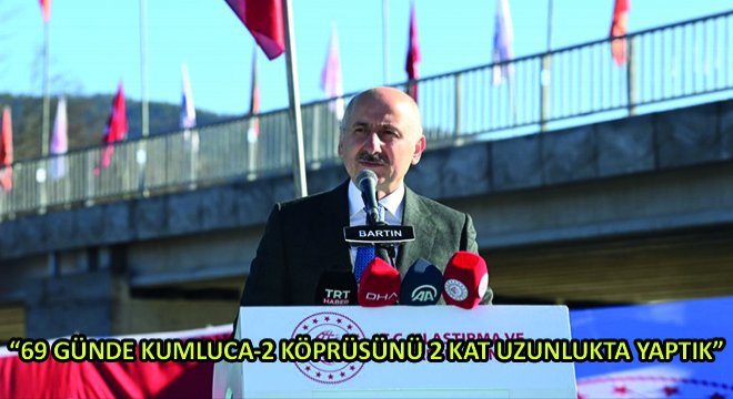 O dönemde en kısa sürede kalıcı yolları ve köprüleri inşa etme sözü verdiklerini anımsatan Ulaştırma Bakanı Karaismailoğlu, selde tahrip olan eski köprünün yerine bölgede ulaşımı sağlayacak yeni Kumluca-2 Köprüsü’nü çok daha iyi standartlarda inşa ettiklerini söyledi. Karaismailoğlu, “Eski köprü 33 metre iken yeni köprümüzü; 3 açıklıklı, 67 metre uzunluğunda, 13 metre genişliğinde projelendirdik. Önceki köprüye göre uzunluğunu 2 kat artırdık; yüksekliğini 7 metreye çıkardık. Böylece bir daha aşırı yağış etkisiyle oluşabilecek olumsuz durumların önüne geçtik. Proje kapsamında ayrıca, 316 metre uzunluğunda bağlantı yolu da inşa ettik. Ve tüm bunları, 69 gün gibi kısa bir sürede tamamladık. Kumluca-2 Köprüsü ile il genelinde ulaşımı sağlayan yollar arasındaki Kozcağız-Kumluca-Abdipaşa Yolu’nda kesintiye uğrayan ve geçici köprülerle tesis edilen ulaşımın kesintisiz akışı sağladık” diye konuştu.