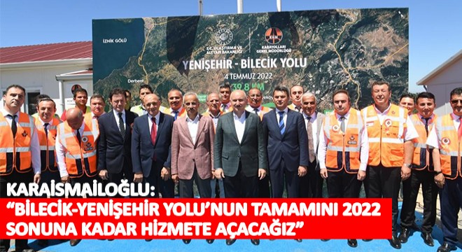 “Şantiye incelemesi yaptığımız Yenişehir-Bilecik-Osmaneli bölünmüş ve bitümlü sıcak kaplamalı yol projesi, toplam uzunluğu 40 kilometrelik Yenişehir-Bilecik Devlet Yolu’nun, Bilecik il genelinde yürüttüğümüz bölümüdür” diyen Karaismailoğlu, “Bilecik il sınırları içinde kalan 16,1 kilometrelik kısmında, bugüne kadar 6,1 kilometresini bölünmüş yol standardında tamamlayarak hizmete açtık. Projede bu yıl; 2,5 kilometrelik BSK bölünmüş yol ve kalan kısımlarını tamamlayacağız. 2022 yılı sonuna kadar da Bilecik Yenişehir yolumuzun tamamını bölünmüş yol olarak hizmete açacağız. Ülkemizin imarı için, tüm ulaşım modlarımızda çalışmalarımıza devam ediyoruz. Haberleşme, Kara, hava, demir ve denizyolları arasında bütünleşik bir ulaşım sistemi kuruyoruz. Tüm ulaşım sistemleri arasında hızlı, verimli, ekonomik bir ulaşım ağını kuruyoruz. 7/24 esasına göre, canla başla çalışmaya devam ediyoruz. Türkiye için, ne yapsak azdır. Bilecik için ne yapsak azdır. Biz halkımıza hizmeti ‘Hak’ka hizmet aşkı ile yapmaya devam edeceğiz” diyerek sözlerini tamamladı.