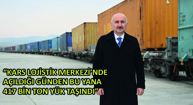 Bakan Karaismailoğlu, “Bakü-Tiflis-Kars Demiryolu hattından taşınan yüklerin elleçlenmesi amacıyla Kars Lojistik Merkezi’ni kurduk. 412 bin ton taşıma kapasitesi ile 400 bin metrekare lojistik alan kazandırıldı” dedi.