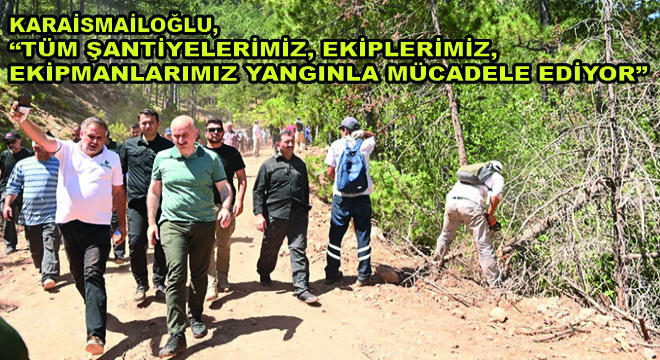 Karaismailoğlu, “Tüm şantiyelerimiz, ekiplerimiz, ekipmanlarımız yangınla mücadele ediyor. Bir yandan arkadaşlarımız, ekiplerimiz diğer yandan Orman Genel Müdürlüğü’nün ekipleri, uzmanların kumandası doğrultusunda yangınla mücadele ediyoruz. Karayolları ekiplerimiz şu anda yangının yerleşim yerleri ile bağlantısını kesmek için bulundukları bölgelerde geniş yollar açmaya çalışıyorlar ki yangının diğer bölgelerle bağlantısı kesilsin. Bölgedeki tüm karayolu şantiyelerimizi yangınla mücadelede kullanıyoruz. Olağanüstü bir hal var bölgede. Temennimiz yangınların bir an önce söndürülmesi. Şu anda bulunduğumuz bölgede 45 derece bir sıcaklık var. Nem neredeyse hiç yok. Bir taraftan da rüzgâr esiyor. Yangınları söndürüyoruz ama bu seferde farklı yerlerde yangınlar çıkıyor” diye konuştu.
