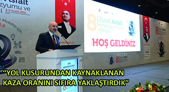 Ulaştırma ve Altyapı Bakanı Adil Karaismailoğlu, 8. Ulusal Asfalt Sempozyumu ve Sergisi açılışına katıldı. “Bizim çocukluğumuzda asfalt yol pek bilinmezdi, yollar ya mıcır ya toprak ya da şoseydi. Onca uğraş, onca emekle yapılmış yol, bir yağmurla dağılır giderdi” diyen Karaismailoğlu, şöyle devam etti:
