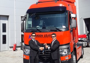 İstanbul’da gerçekleştirilen teslimat töreninde Karden Lojistik ve Denizcilik adına Şahin Kahraman, Renault Trucks adına ise İstanbul Avrupa Satış Sorumlusu Tayfun Fıçıcı hazır bulundu. Karden Lojistik ve Denizcilik adına törende konuşma yapan Şahin Kahraman, “Kurulduğumuz günden beri Renault Trucks Premium 420 serisi ve sonrasını tercih ettik ve bugüne kadar Renault Trucks tercihinin doğru olduğunu gördük. Bu güvenle T serisinden araç siparişi verirken hiç düşünmedik ve sonuçta Türkiye’nin ilk Euro 5 motorlu T Serisi çekicisini filomuza kattık. Yeni ürünün de selefleri gibi yakıtta cimri, işletmede kolay ve kaliteli olduğunu biliyoruz. Yeni yatırımımızın hayırlı olmasını diler, satış sırasında bizlere verdiği büyük destek nedeniyle Tayfun Bey’e teşekkür ederiz” sözleri ile tercihlerinin her zaman Renault Trucks’tan yana olacağını ifade etti.