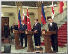 Çerçeve anlaşması öncesinde Başbakan Erdoğan, Azerbaycan Cumhurbaşkanı Aliyev ve Gürcistan Devlet Başkanı Saakaşvili” Tiflis Deklerasyonu” nu imzaladı.