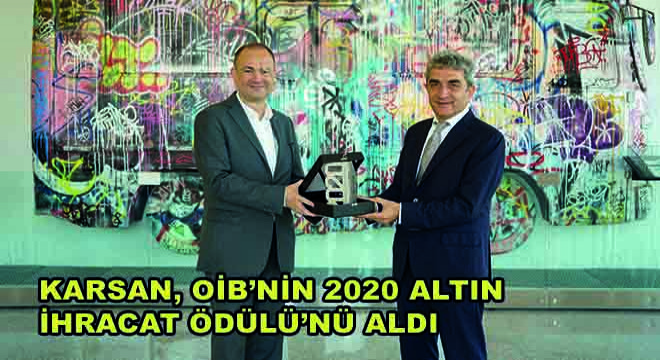 Bursa’da yer alan fabrikasında çağın mobilite ihtiyaçlarına uygun ulaştırma çözümleri sunan yerli üretici Karsan, üretim ve satış başarılarını ödüllerle taçlandırmaya devam ediyor. Son olarak Karsan, Uludağ Otomotiv Endüstrisi İhracatçıları Birliği’nin (OİB) düzenlediği ve özverili çalışmalarıyla, sektörün 2020 yılında 15. kez üst üste ihracat şampiyonu olmasına katkıda bulunan OİB üyesi firmalara verdiği ödül kapsamında ihracat başarı ödülüne layık görüldü. Bu doğrultuda 2020 yılında en fazla ihracat yapan otomotiv firmaları sıralamasında pandemi koşullarına rağmen 29. sırada yer alan ve üstün ihracat performansı gösteren Karsan’a “Altın İhracat Ödülü” verildi.