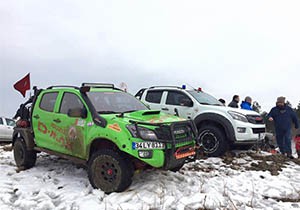 Off Road tutkunları, karlı zeminin keyfini çıkararak hünerlerini sergilediler. Zorlu