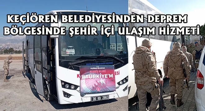Deprem bölgelerinde görev yapan tümulaşım desteği veriyor. kamu personeline ve sivil vatandaşlara ayrım yapmaksızın ulaşım hizmeti sunduklarını söyleyen Keçiören Belediye Başkanı Turgut Altınok, “Yaralarımızı sarmak için devlet ve millet olarak canla başla çalışıyoruz. Deprem bölgesindeki en önemli çalışmalarımızdan biri de ulaşım hizmetimizdir. Bu noktada imkânlarımızı seferber ettik. Ayrıca tırlar dolusu insani yaşam malzemesi, iş makineleri, cenaze araçları, Otobüs, jenaratör, mobil aşevi, çorba aracı, çöp kamyonu, teknik personel, hizmet personeli, mobil yatakhane, çadır, ısıtıcı, elektrik kablosu, aydınlatma sistemi gibi onlarca hizmetimizle de bölgedeyiz.” dedi.?