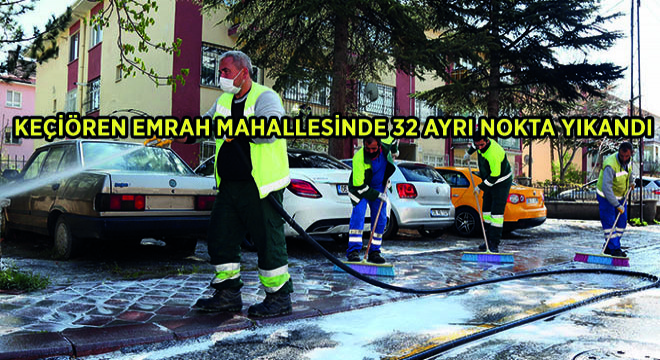 Keçiören Belediye Başkanı Turgut Altınok, “Koronavirüsle mücadelemizi her bir mahallemizde yürüttüğümüz detaylı temizlik çalışmalarıyla sürdürüyoruz. Emrah Mahallemizde 32 ayrı noktayı yıkayarak dezenfekte ettik. Temizlik ekiplerimiz muhtarlarımızla koordineli bir şekilde sokak ve caddelerimizi dip köşe temizliyor, Çevre Koruma ve Kontrol Müdürlüğü ekiplerimiz de bu noktalarda dezenfekte çalışması yürütüyor” dedi.