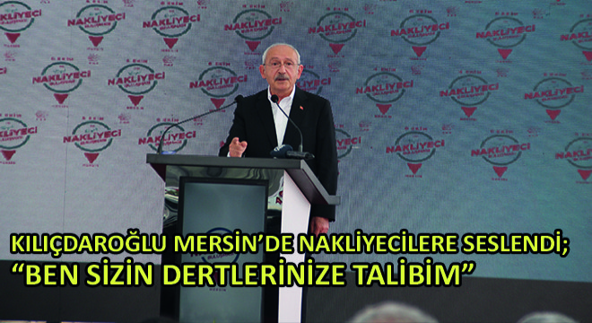 CHP Lideri Kılıçdaroğlu, ‘Büyük Nakliyeciler Buluşması’ çerçevesinde Mersin’e gelerek, nakliyeciler, kamyon ve tır şoförleriyle buluştu. Nakliyeciler Sitesi arkasındaki Mersin Büyükşehir Belediyesi Tır Garajında gerçekleşen buluşmaya, CHP Mersin milletvekilleri, Mersin Büyükşehir Belediye Başkanı Vahap Seçer, Adana Büyükşehir Belediye Başkanı Zeydan Karalar, CHP’li ilçe belediye başkanları ve sektör temsilcileri katıldı.