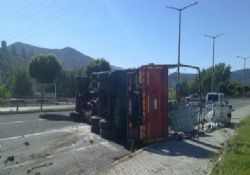 Edinilen bilgiye göre, Kızılcahamam ilçesi D-750 karayolu polis lojmanları girişinde İstanbul’dan Ankara istikametine gitmekte olan 51 DC 535 plakalı kimyasal madde yüklü kamyon, sürücüsünün direksiyon hakimiyetini kaybetmesi sonucu önündeki bariyerlere çarptı. Çarpmanın etkisiyle kaldırımları söken kamyon devrildi.