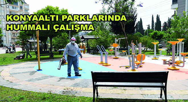 İçişleri Bakanlığı’nın genelgesiyle korona virüs tedbirleri kapsamında Mart ayı sonunda park ve bahçeler, yeşil alanlarda oturma grupları vatandaşların kullanımına kapatıldı. Tedbirlerin gevşetilmesi, 65 yaş üstündekiler ve 18 yaş altı çocuklara sokağa çıkma yasağının sona ermesinin ardından Konyaaltı Belediyesi Park ve Bahçeler Müdürlüğü, yeşil alanlarda çalışmalarını hızlandırdı. İlçe sınırlarındaki bütün parklarda hummalı bir temizlik çalışması başlatıldı. Ekipler, uzayan çimleri biçerek, çocuk oyun grupları ve oturma alanlarını temizledi. Park alanları düzenli olarak dezenfekte edilecek.