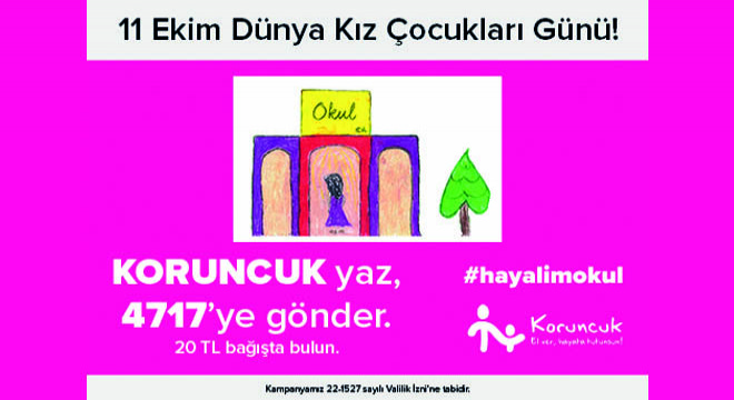 Ayrıca #HayalimOkul diyen kız çocuklarının gerçeği, “hayalleri” olsun diyorsanız; KORUNCUK yazıp 4717’ye SMS göndererek 20 TL’lik bağış yapabilirsiniz.