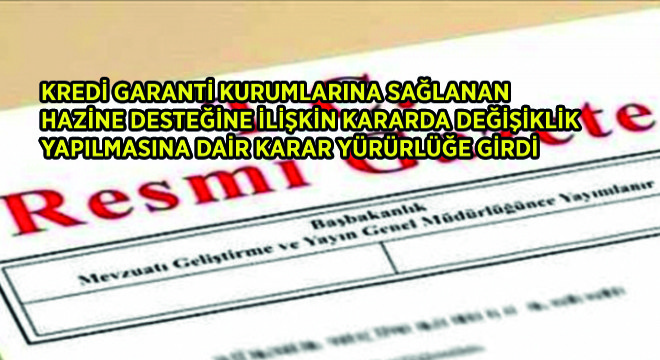Kredi Garanti Kurumlarına Sağlanan Hazine Desteğine İlişkin Kararda Değişiklik Yapılmasına Dair Karar Yürürlüğe Girdi