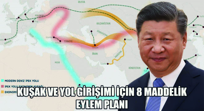 İlk olarak, kara ve deniz ayaklarıyla başlayan girişimi çok boyutlu bir bağlantılılık ağına dönüştürmeyi planladıklarını ifade eden Şi, bu kapsamda kara güzergahlarından "Çin-Avrupa Demiryolu Ekspresi" olarak adlandırılan hattı geliştirmeyi sürdüreceklerini, ayrıca Hazar-geçişli uluslararası ulaştırma koridorları oluşturmak ve Avrasya kıtasında kara ve demir yollarıyla bağlantılı yeni bir lojistik koridoru inşa etmek için ortak çabalara katkı sağlayacaklarını bildirdi.