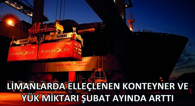 Şubatta limanlarda elleçlenen konteyner miktarı geçen yılın aynı ayına göre yüzde 2,1 artarak 1 milyon 6 bin 332 TEU'ya yükseldi.