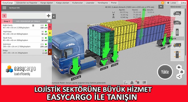 EasyCargo, işletmelerin kargo depolama üretimlerini 3D tasarımlarla oluşturmalarına ve görselleştirmelerine olanak tanıyarak kargo alanının daha iyi kullanılmasını ve taşımacılık yönetimi hizmetlerinin dış kaynak kullanımında zaman ve maliyet verimliliği sağlıyor.
