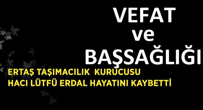 "Ertaş Uluslararası Taşımacılık firmasının kurucusu Hacı Lütfü Erdal Hakk’ın rahmetine kavuşmuştur. Cenazesi bugün (18.02.2019) öğle namazına müteakip Sarısalkım köyünde defnedilecektir.