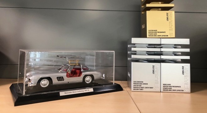 Mercedes-Benz’in Pop-Up Store uygulaması daha önceden Kristal Elma Festivali’nde de iki farklı ödül kazanmıştı. Türkiye’de lokasyon ve müzik türüne göre kişiselleştirilmiş spotların ilk defa hedefli dinamik radyo spotu olarak kullanıldığı uygulama olan; Mercedes-Benz Pop-Up Store Programatik Audio projesi, MMA Smarties’te “Mobile Audio” gümüş ödülünü kazandı. Aynı uygulama Türkiye’deki Kristal Elma Festivali’nde “Dijital Medya Kullanımı/En Yenilikçi Teknoloji” dalında Gümüş Elma alırken, “Veriden Beslenen Yaratıcılık/Verinin Kullanımı” dalındaysa Bronz Elma’nın sahibi olmuştu. MMA Smarties ile beraber proje hem Türkiye’de hem de uluslararası platformlarda ödül almış oldu.